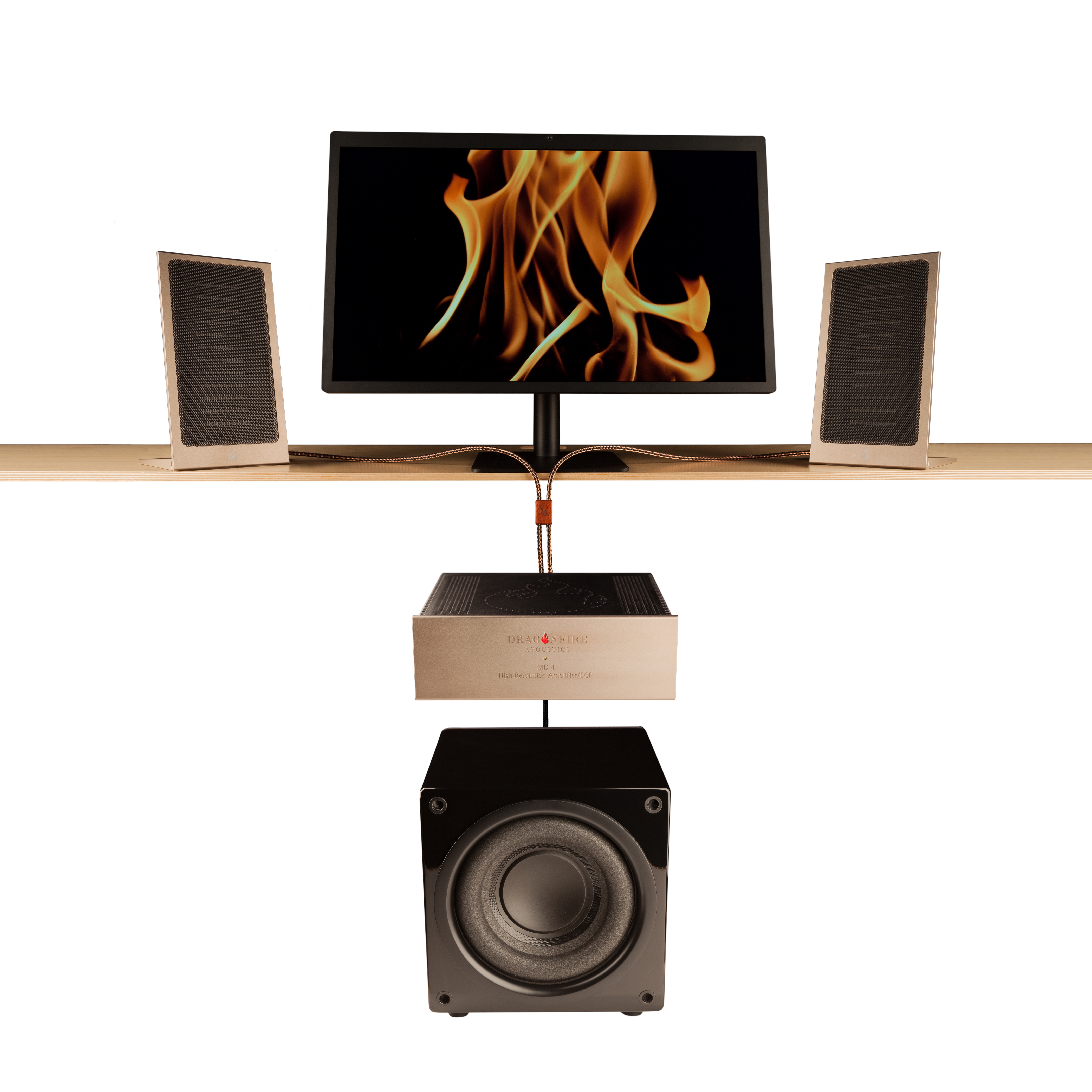 Housed in a matching anodized aluminum enclosure, the MD-4 is a hand-built globally adaptable 2-input/4-output ADC/DAC+DSP+High Capacitance Class-D amplifier (250W RMS/channel) with balanced analog XLR and PCM SPDIF, AES/EBU, and USB streamer inputs.